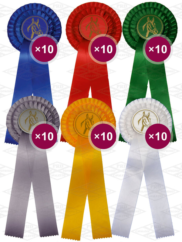 Inhoud: 10 erelinten per kleur in geel, grijs, wit, blauw, rood en groen