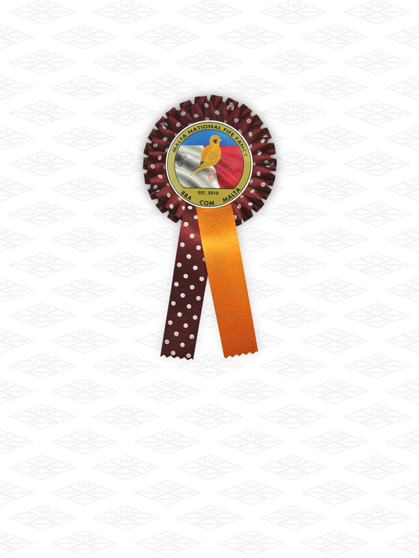 Dit model is uitgerust met een fijn gerimpelde premium-rozet in plaatsingskleur, vervaardigd van donkerrood lint met stippen